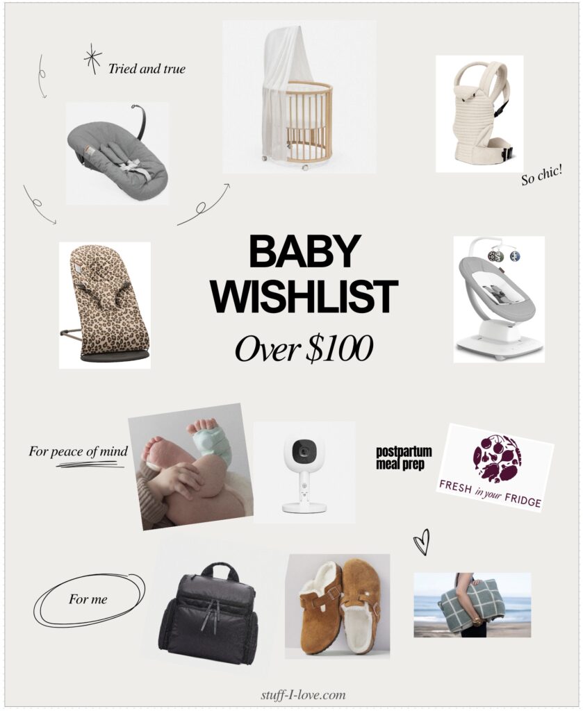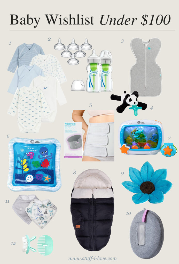My previous post talked about my Baby #2 wishlist of items over $100, and this one includes items under $100. Like the previous list, many are tried-and-true items that I used with April, and some are new-to-me things recommended by others.