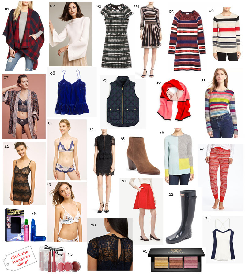 I ordered a Rails plaid shirt (50% off), a Bobbi Brown shimmer brick palette (25% off, it’s so pretty), a Rachel Parcell midi pencil skirt (20% off with code BOXING20), and a colorful striped merino wool sweater (extra 30% off sale)